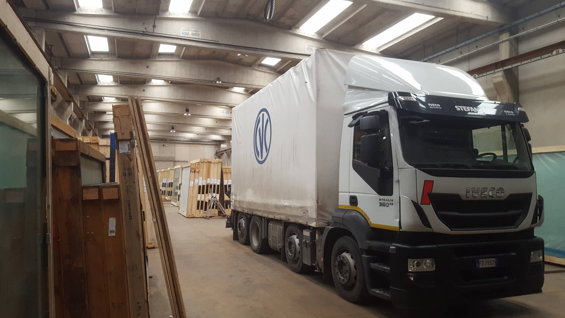 Commercio e distribuzione vetro piano in lastra con mezzi e magazzino deposito di proprietà nell’ambito del nord Italia.